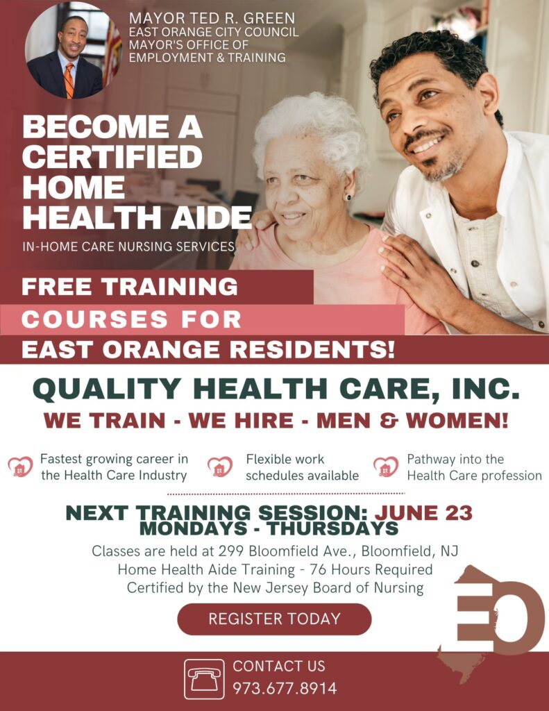 Join our next Home Health Aide Training Session starting June 23 at 299 Bloomfield Ave, Bloomfield, NJ!
